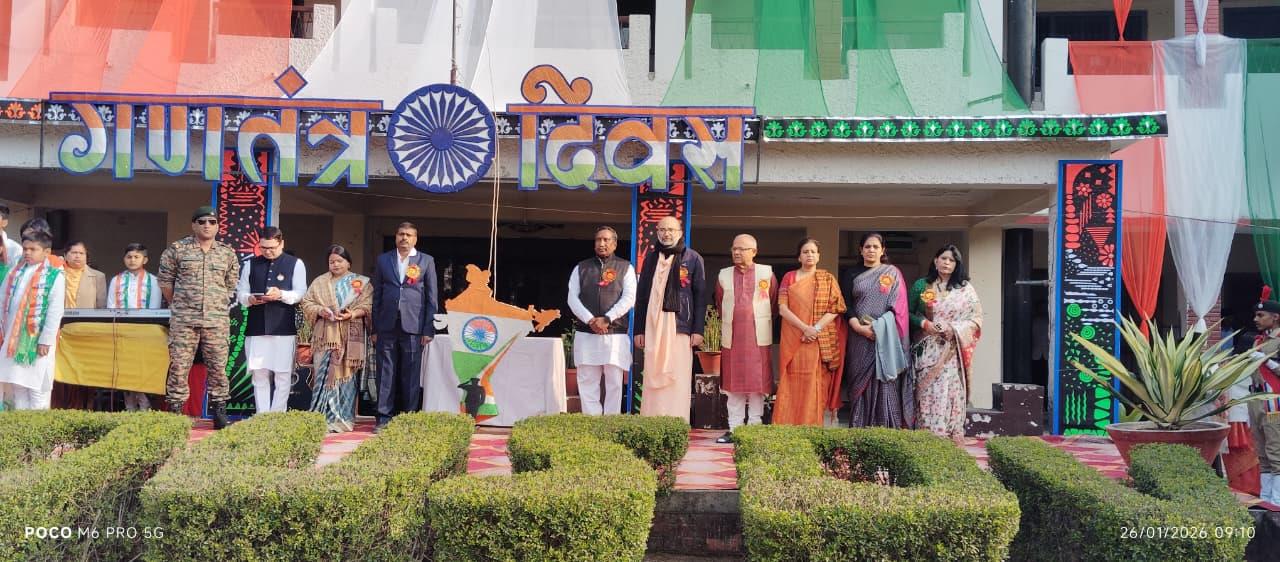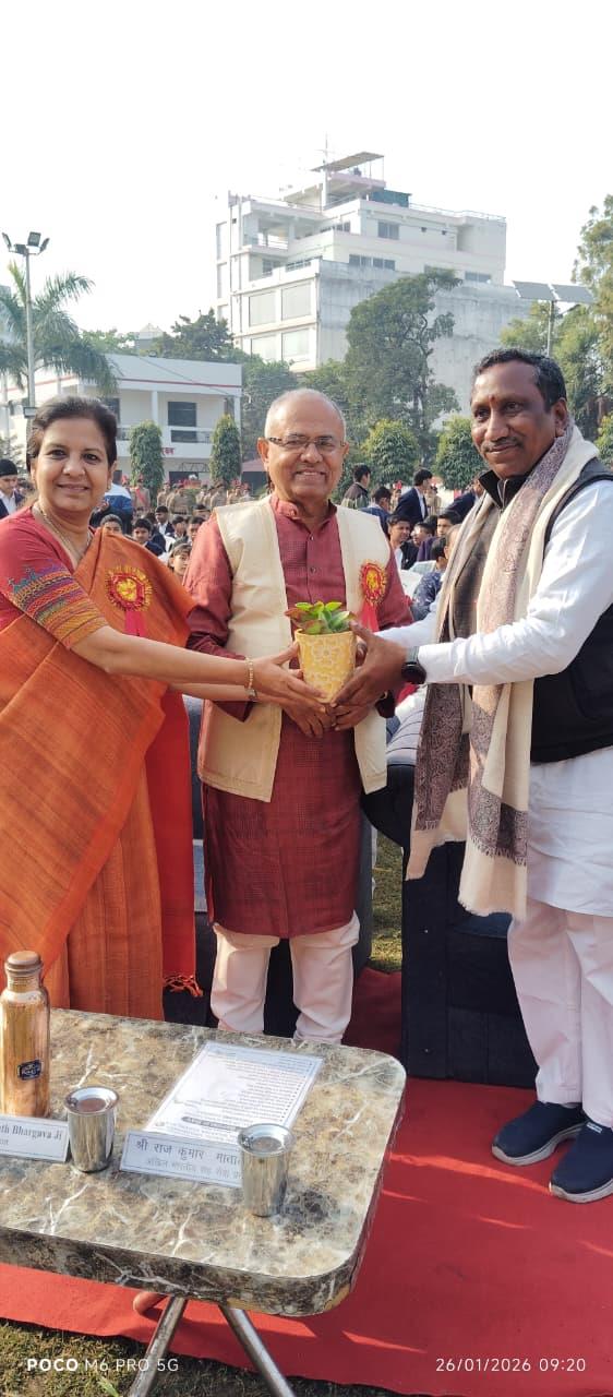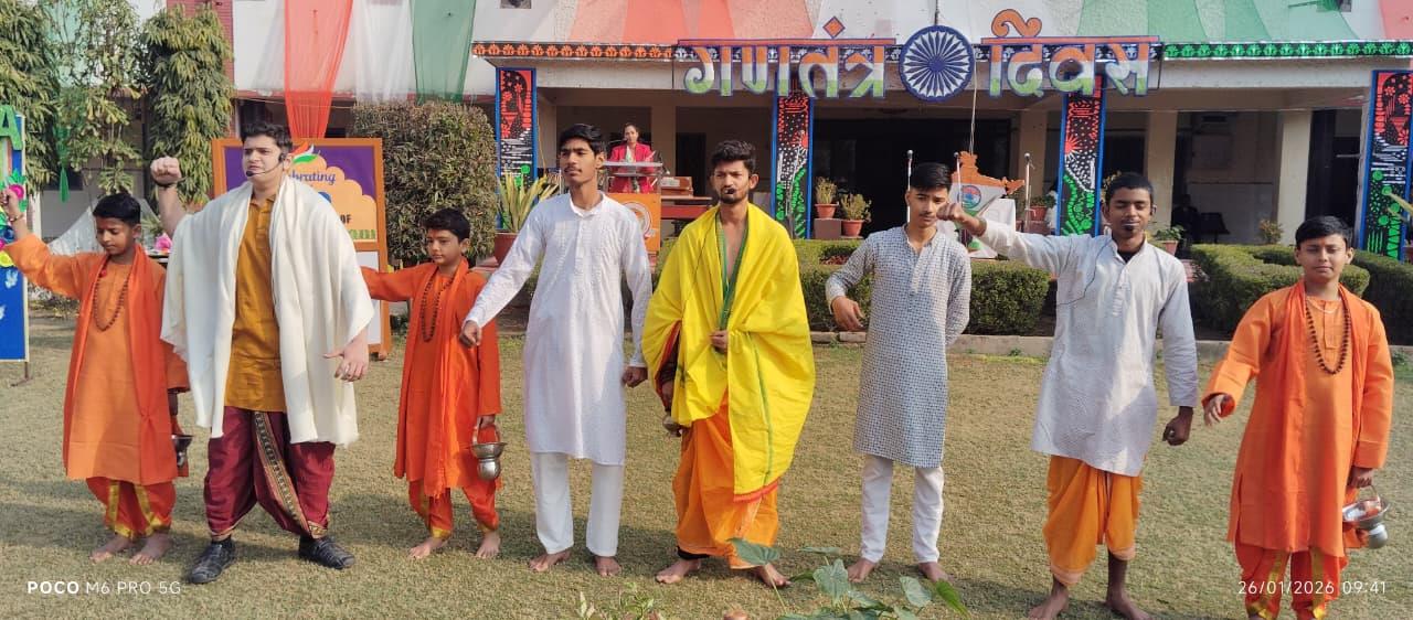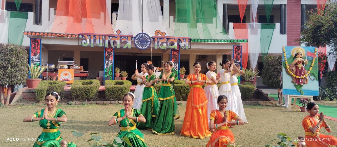 Description: Patriotism filled the air as Pt. Deen Dayal Upadhyay Sanatan Dharma Vidyalaya celebrated its 77th Republic Day with grandeur! The occasion, themed '150 years of Vande Mataram', began with the unfurling of the Tricolour by Chief Guest Shri Jagnarayan Sharma ji (f/o Srishti Sharma, 1st Rank Achiever of Class XII), accompanied by the soul-stirring National Anthem. The event featured captivating cultural performances and inspiring speeches, with esteemed guests including Manager Ms Neetu Singh ji, President Mr Yogendra Nath Bhargava ji and Managing Committee members Ms Urshmeena Kher ji and Ms Neeru Tondon ji and special guest Mr Raj Kumar Matale ji from Rashtriya Swayam Sevak Sangh. The celebration concluded with refreshments, leaving everyone infused with national pride!