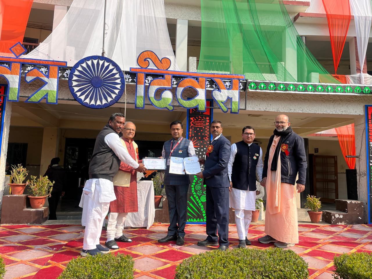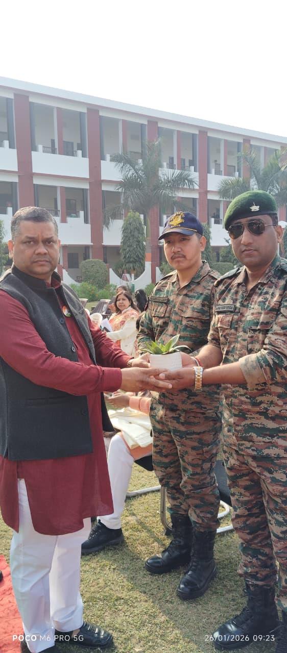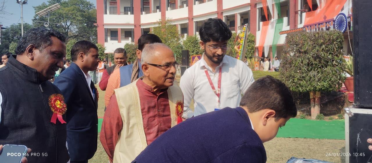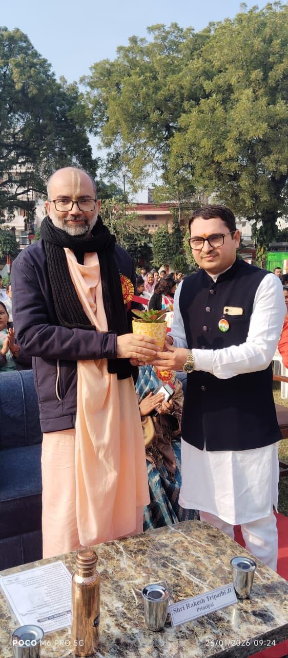 Description: Patriotism filled the air as Pt. Deen Dayal Upadhyay Sanatan Dharma Vidyalaya celebrated its 77th Republic Day with grandeur! The occasion, themed '150 years of Vande Mataram', began with the unfurling of the Tricolour by Chief Guest Shri Jagnarayan Sharma ji (f/o Srishti Sharma, 1st Rank Achiever of Class XII), accompanied by the soul-stirring National Anthem. The event featured captivating cultural performances and inspiring speeches, with esteemed guests including Manager Ms Neetu Singh ji, President Mr Yogendra Nath Bhargava ji and Managing Committee members Ms Urshmeena Kher ji and Ms Neeru Tondon ji and special guest Mr Raj Kumar Matale ji from Rashtriya Swayam Sevak Sangh. The celebration concluded with refreshments, leaving everyone infused with national pride!