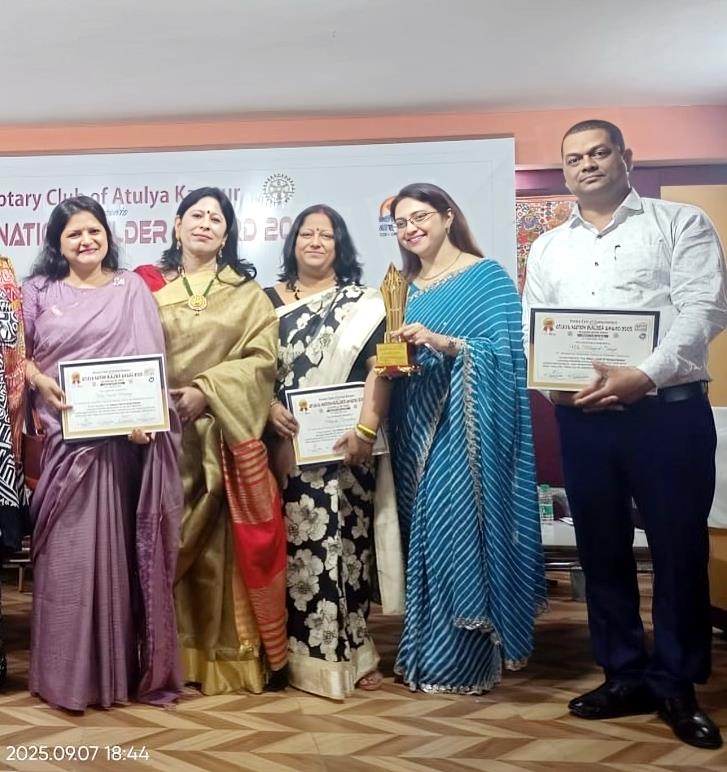 We are delighted to announce that four exceptional educators from Pt Deen Dayal Upadhyay Sanatan Dharma Vidyalaya, namely Mr. Manjeet Singh, Ms. Smriti Mukherjee, Ms. Mridu Dhingra, and Ms. Mamta Srivastava, have been honored with the prestigious Atulya Nation Building Award 2025 by Rotary Club of Atulya Kanpur.