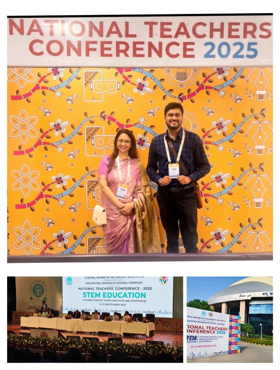 We are elated to share that two of our distinguished educators, Ms. Mridu Dhingra and Mr. Bankey Bihari Agarwal, were privileged to participate in the prestigious National Teachers' Conference 2025 on STEM Education, held at the esteemed Bapu Sabhagar in Patna from 12/09/2025 to 13/09/2025. Organized by the Central Board of Secondary Education (CBSE) in collaboration with Patliputra Sahodaya School Complex, this conference provided a platform for educators to engage in meaningful discussions and knowledge sharing on innovative STEM education practices. We commend our educators for representing our institution and contributing to the discourse on STEM education.